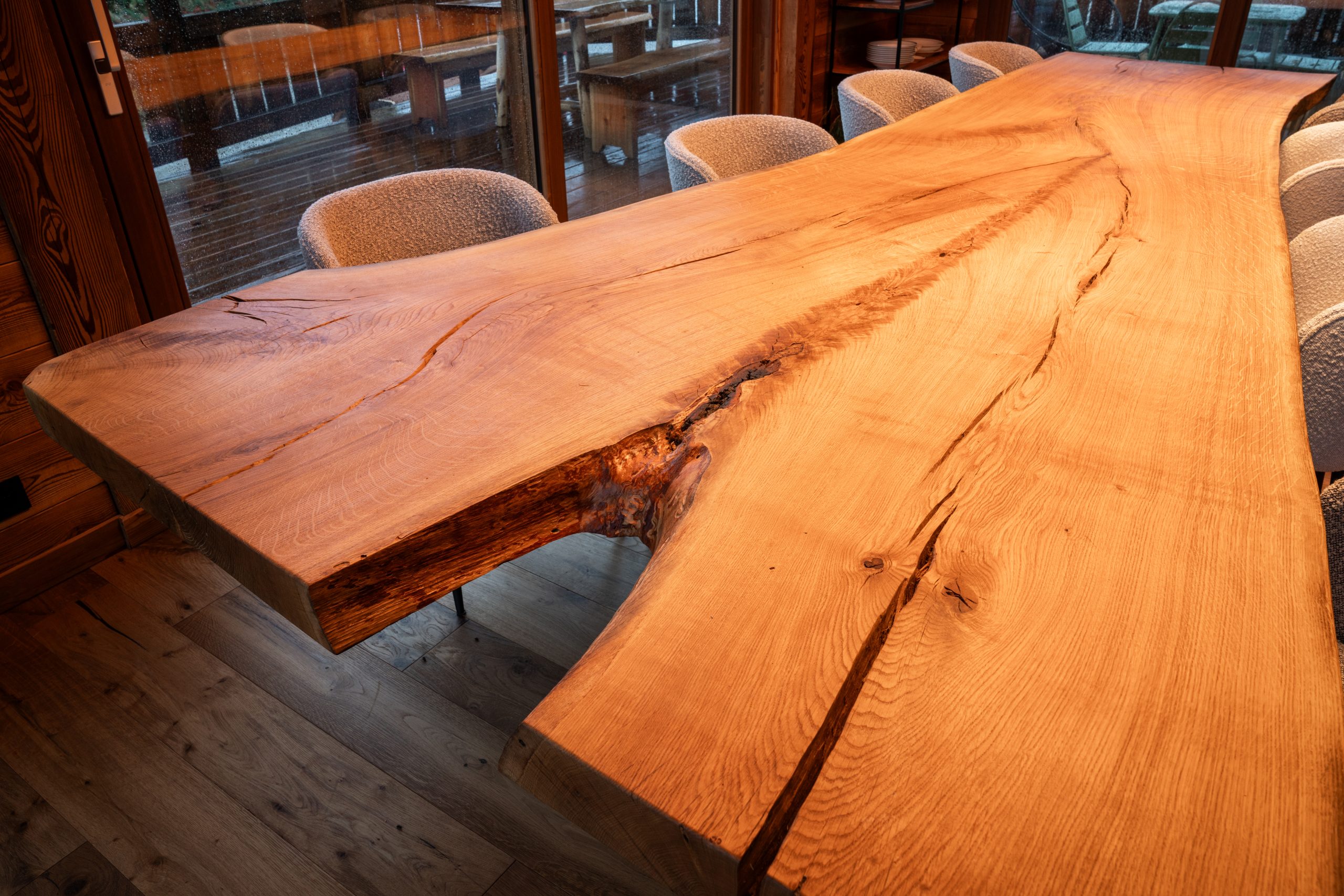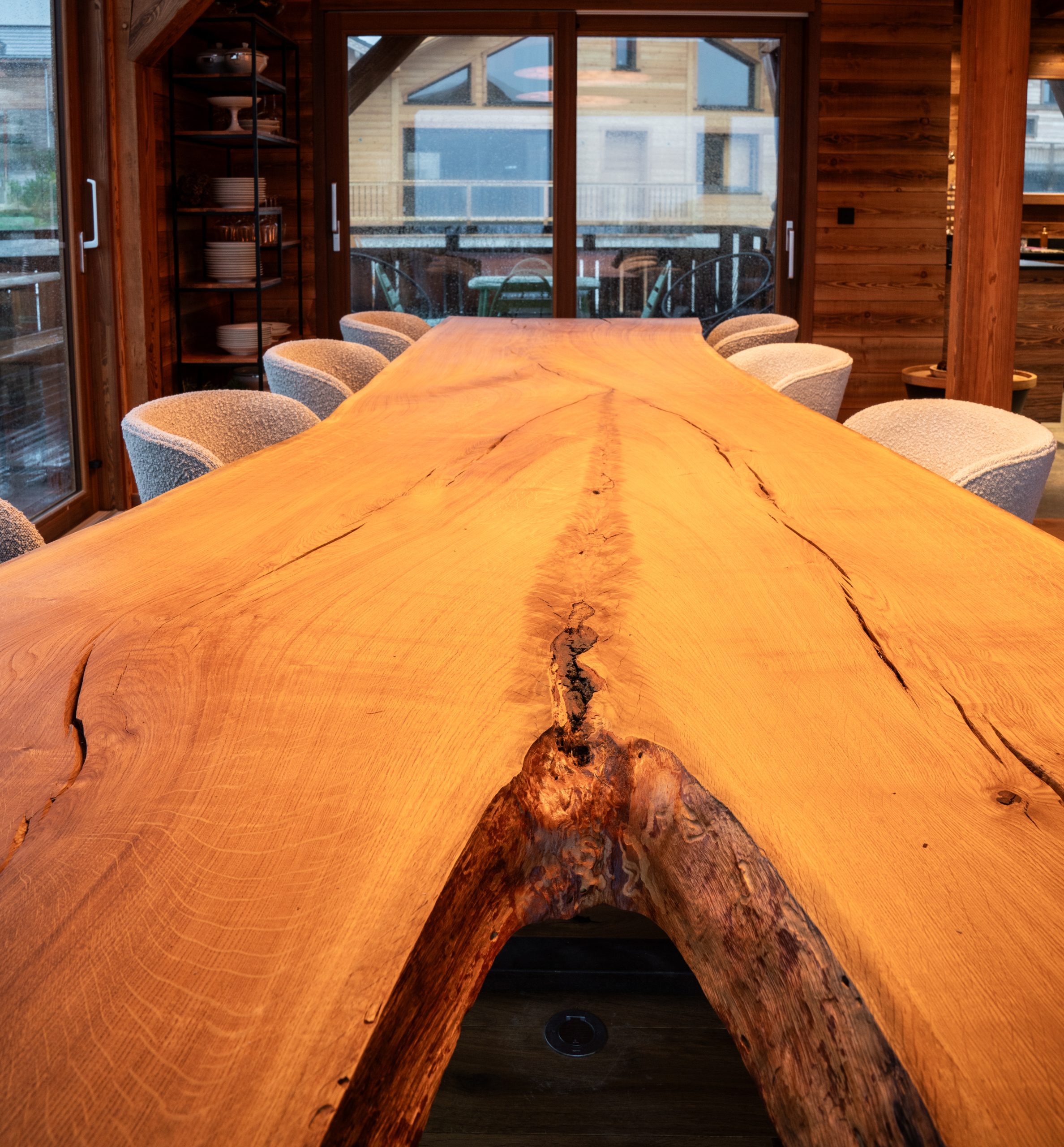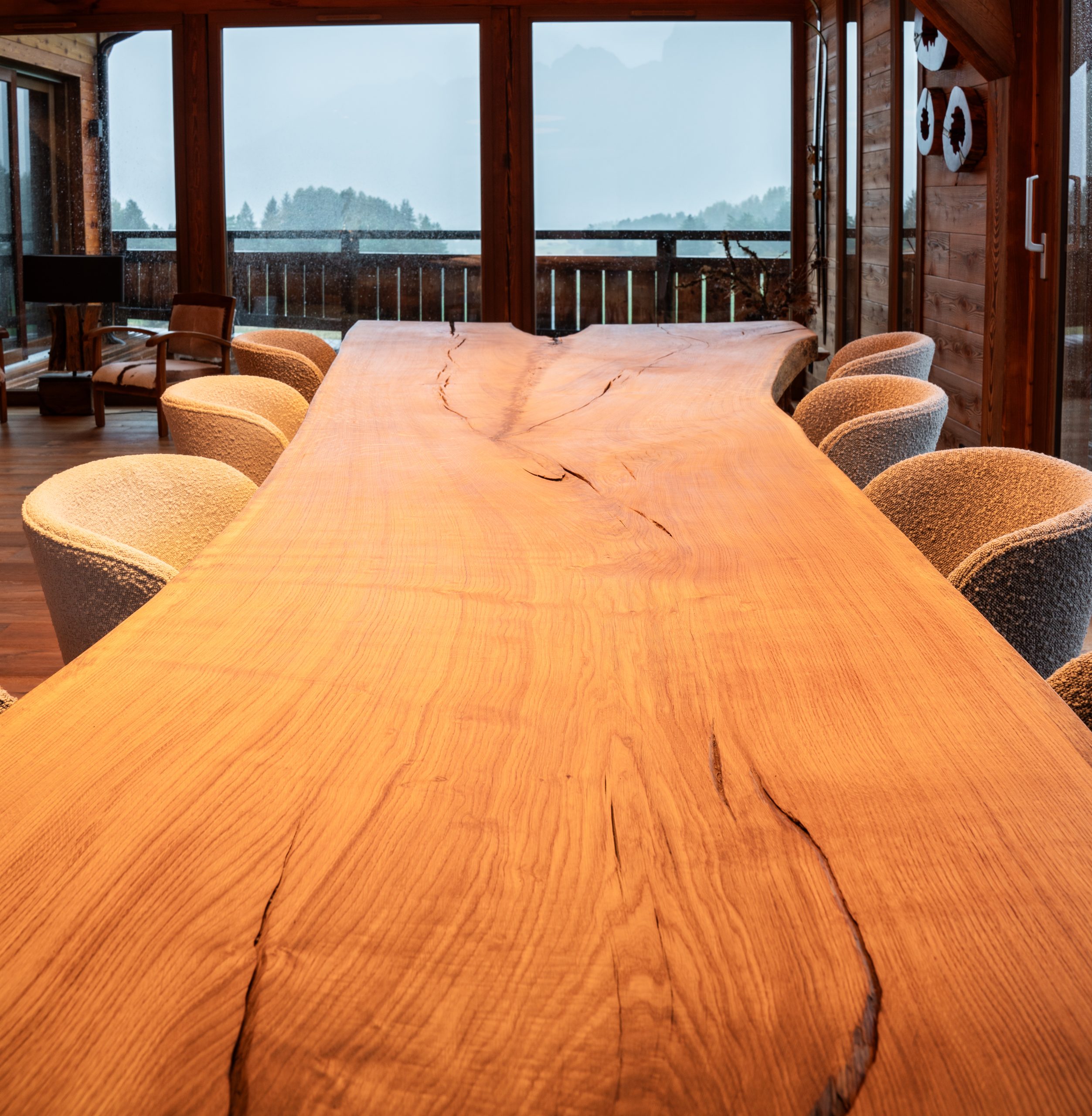 table en bois xxl unique pour un chalet de montagne, bois d'un chêne de 350 ans